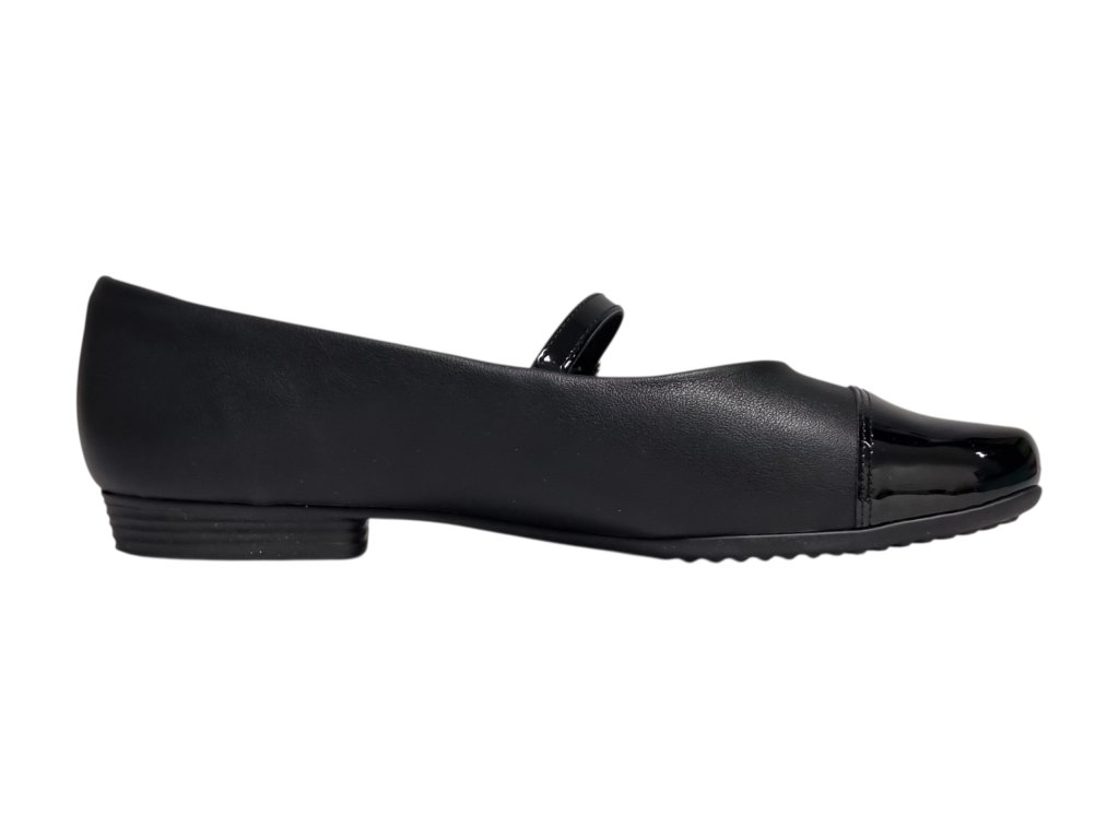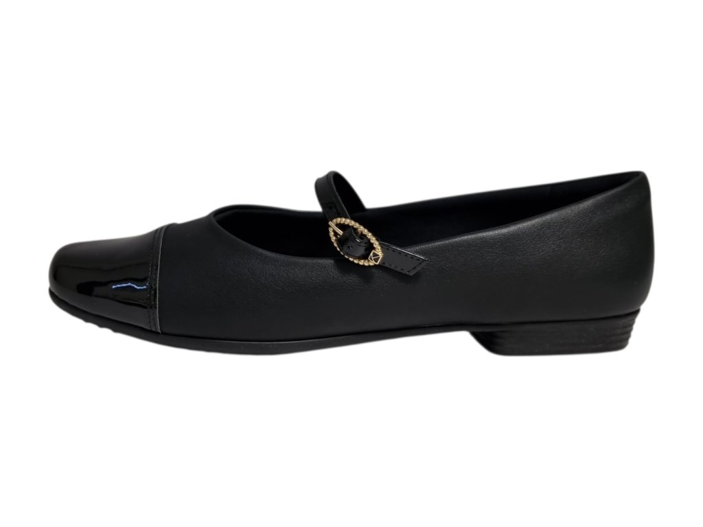 - 👠 Styl: Elegantní baleríny na nízkém klínku s lakovanou špičkou a nastavitelným páskem přes nárt