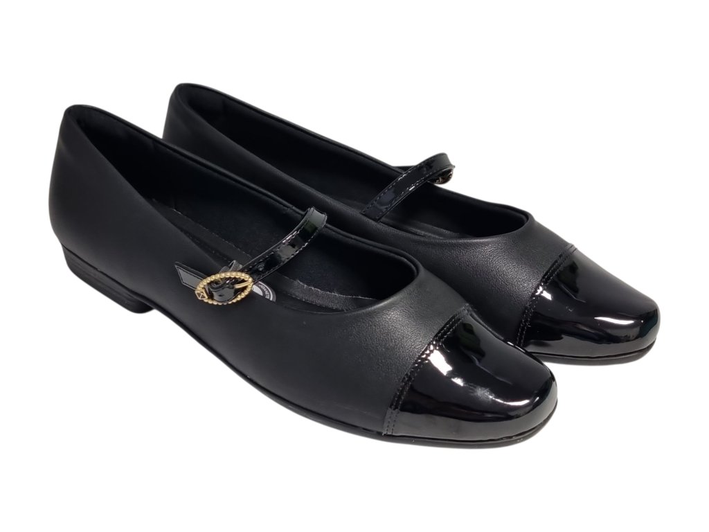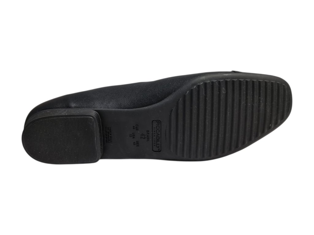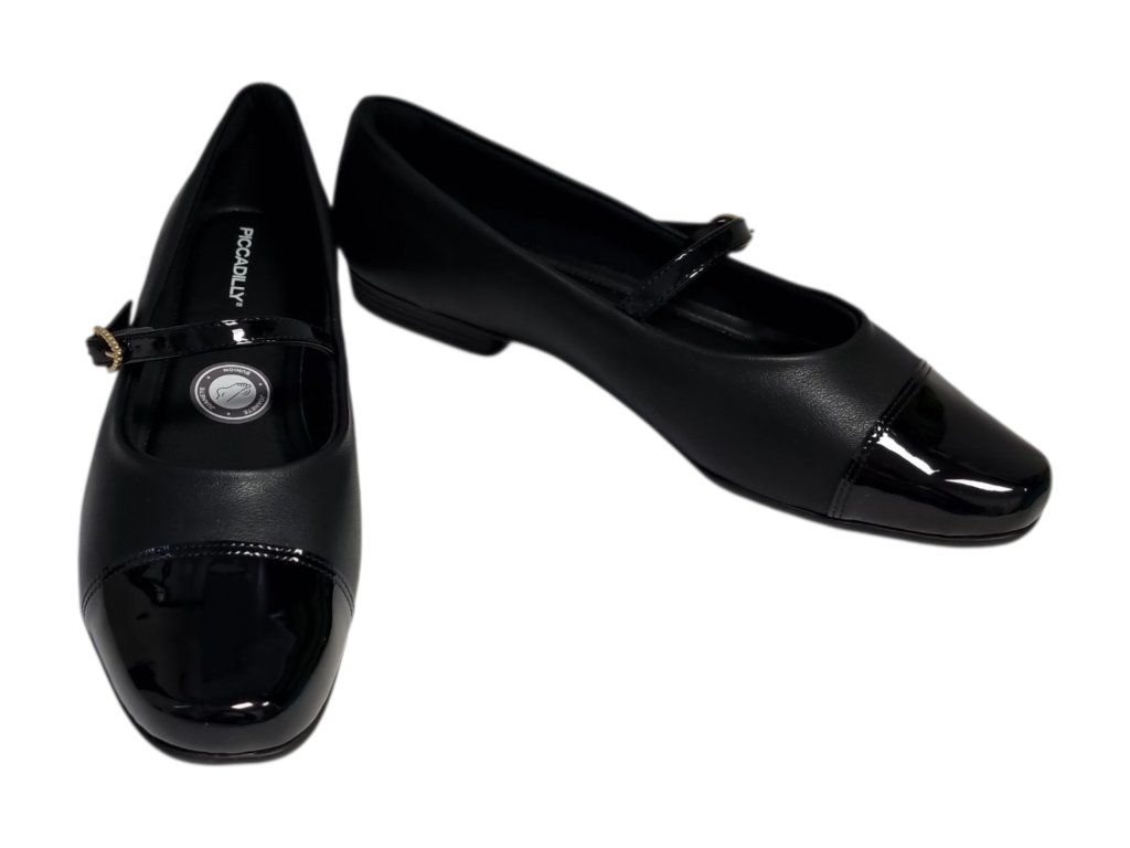 Dámské baleríny brazilské značky Piccadilly představují ideální obuv pro ženy, které hledají elegantní vzhled a maximální pohodlí i při citlivých chodidlech. Jsou navrženy s ohledem na potřeby žen s halluxy nebo jinými deformitami nohou. V oblasti palcového kloubu mají měkký stretchový materiál, který se dokonale přizpůsobí tvaru nohy a netlačí. Svršek z kvalitní syntetiky je jemný, lehce pružný a snadno se udržuje. Nízký široký podpatek zaručuje stabilní krok a zároveň elegantní vzhled, který se hodí do práce i pro volný čas. Baleríny se snadno nazouvají a drží perfektně na noze díky nastavitelnému pásku přes nárt. Paty chrání měkký opatek proti odřeninám, a proto doporučujeme používat pro obouvání lžíci na boty.