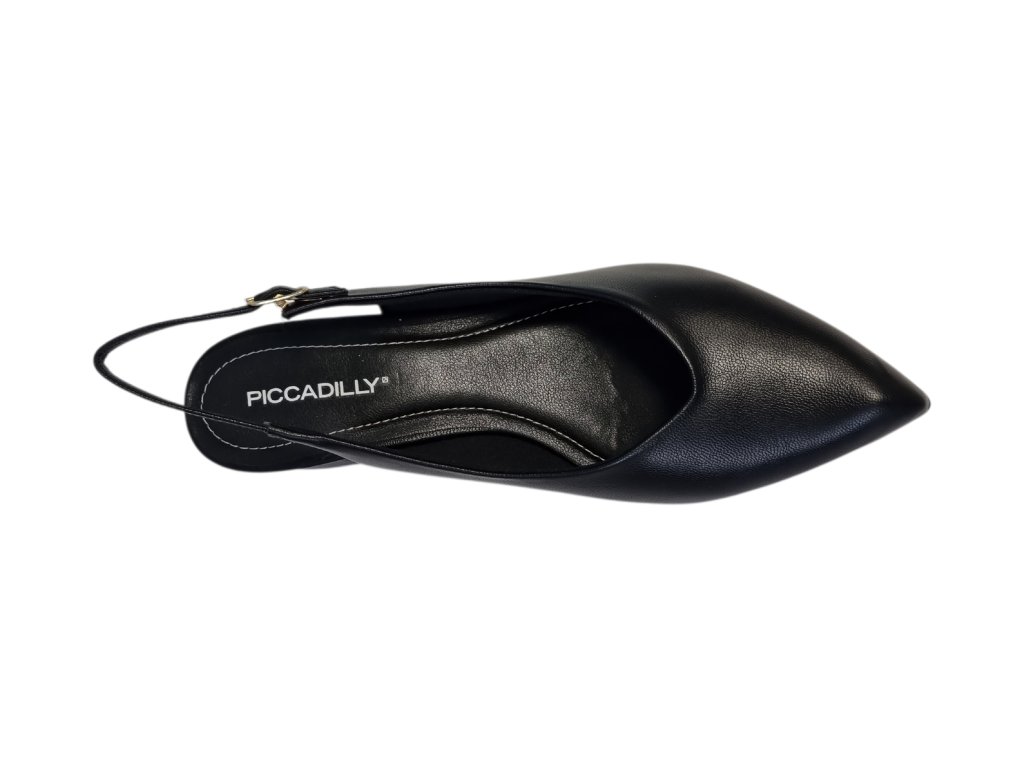 Elegantní dámské lodičky značky Piccadilly jsou synonymem pohodlí a nadčasového stylu. Hladký černý svršek působí luxusně a dokonale doplní formální i společenské outfity. Model má volnou patu a nastavitelný pásek se sponou, který zajistí jistotu při chůzi i dokonalé přizpůsobení noze. Špičatý tvar působí jemně a elegantně, zatímco nízký 3 cm podpatek poskytuje potřebnou stabilitu a komfort i při celodenním nošení.