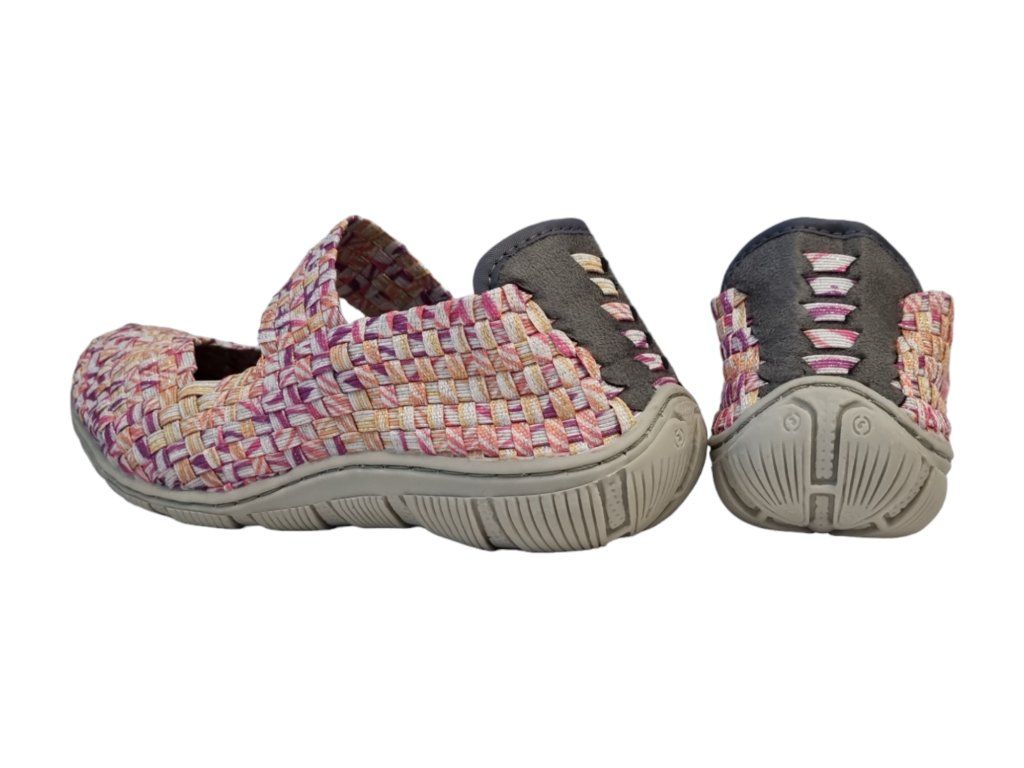 Gumičková obuv Over značky Rock Spring je originální a velmi oblíbená. Boty jsou ručně splétané z textilních gumiček, díky čemuž krásně padnou každé noze. Pravý komfort poskytují nejen pružné gumičky, které se přizpůsobí i různým deformitám nohy (větším či bolestivějším kloubům), ale i příjemně vyměkčená stélka. Boty jsou určené pro každodenní nošení a při znečištění je lze i šetrně vyprat.