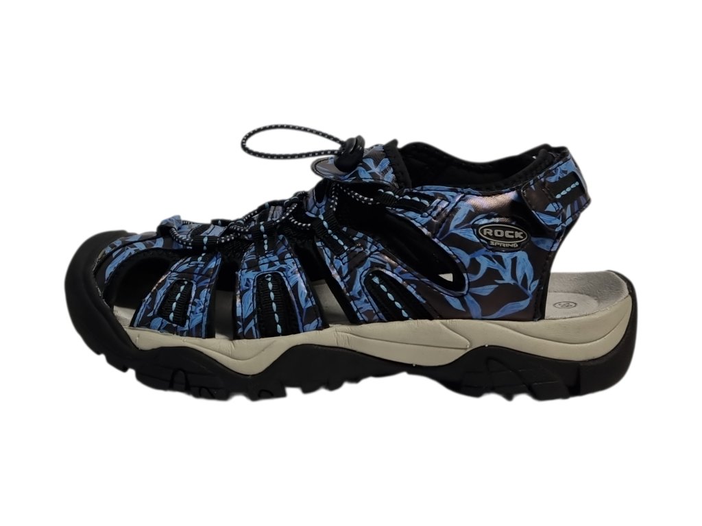 Dámská letní vycházková sandálová obuv Rock Spring je zákazníky velmi oblíbená. Boty jsou vyrobeny z kombinace syntetického a textilního materiálu. Jsou lehké a pohodlné. Díky zakryté špičce jsou vhodnou obuví jak do města, tak i do terénu.