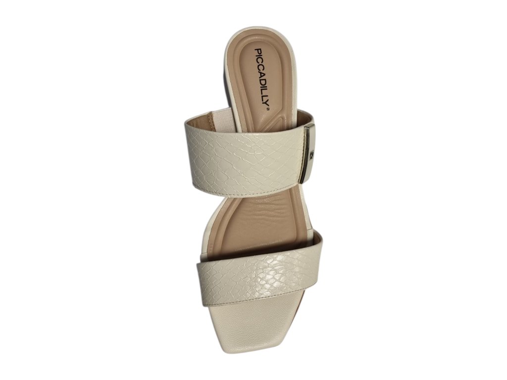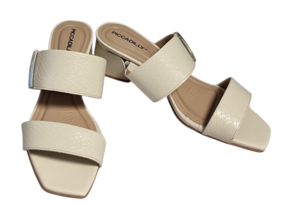 Dámská obuv brazilské značky Piccadilly je velmi luxusní a komfortní. Stélky jsou antibakteriální a antimikrobiální a zabraňují vznikání nepříjemných pachů. Tyto pantofle jsou vhodné pro teplé letní období na chůzi po městě, v parku i do společnosti. Lze je kombinovat s širokou škálou ležérních i slavnostních outfitů. Pružný pásek zajišťuje díky gumovému zakončení perfektní přizpůsobení každé noze.