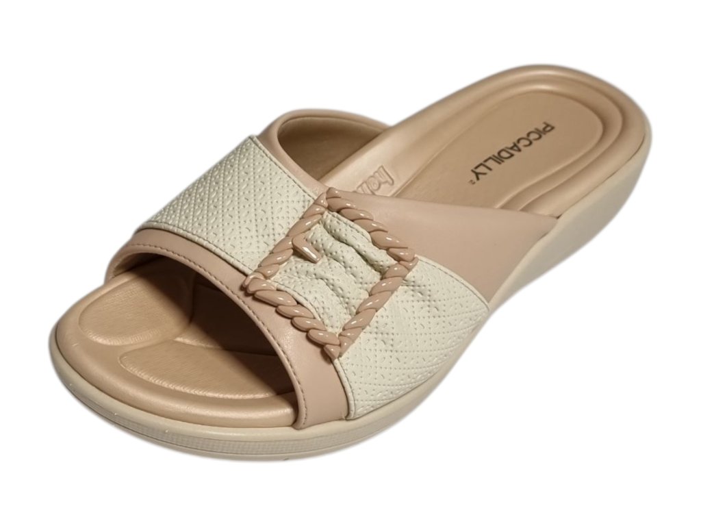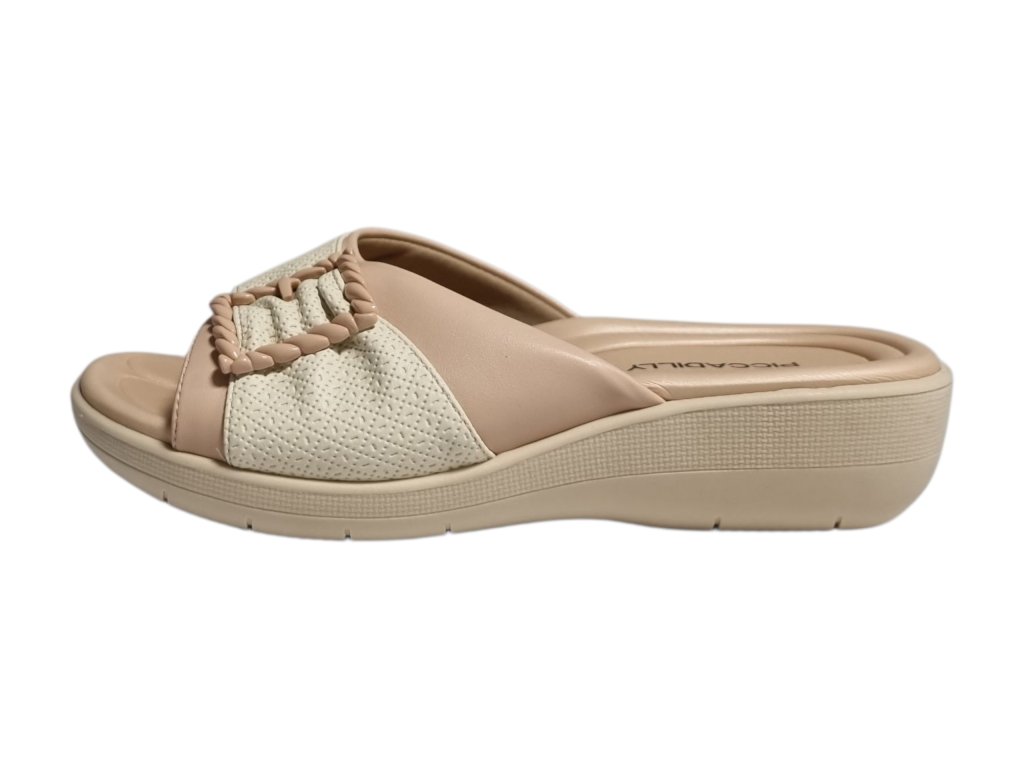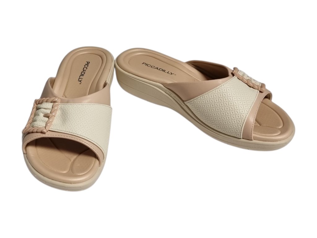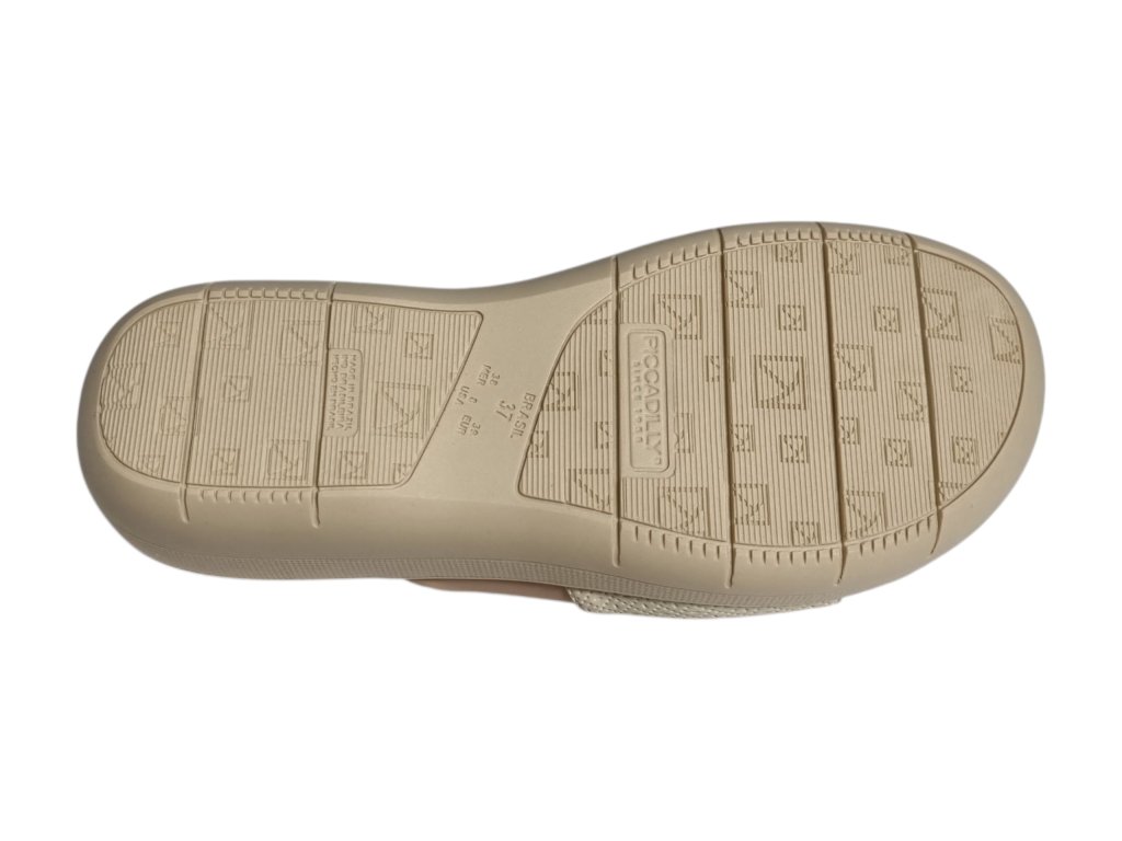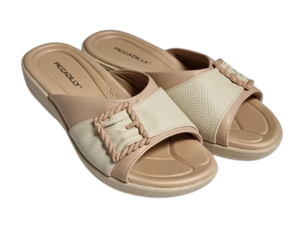 Dámská obuv brazilské značky Piccadilly je velmi luxusní a komfortní. Pohodlí pro citlivá chodidla i elegantní vzhled v jednom. Tyto pantofle poskytují skvělou ventilaci a pohodlí pro dlouhé nošení v teplém počasí. Lze je kombinovat s širokou škálou ležérních outfitů. Tyto dámské pantofle řady Joanete jsou navržené speciálně pro ženy, které trápí halluxy (vbočený palec) nebo širší nárt. Měkký, pružný materiál v oblasti kloubů eliminuje tlak a přizpůsobí se tvaru nohy. Anatomicky tvarovaná stélka zajišťuje přirozenou oporu chodidla a celodenní komfort i při delším nošení.