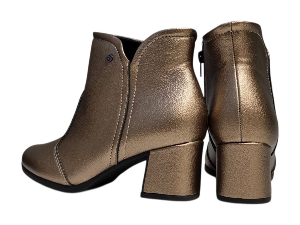 Svršek bot je vyroben ze syntetického materiálu vysoké kvality, který je měkký a přizpůsobivý, zároveň se snadno udržuje. Uvnitř najdete jemnou podšívku, jež zajišťuje příjemné teplo a pohodlí po celý den. Obuv se pohodlně nazouvá díky zipu na vnitřní straně, takže se nemusíte zdržovat šněrováním. Podpatek i podešev jsou navrženy tak, aby poskytly stabilní krok a optimální oporu – ideální pro ženy, které tráví hodně času na nohou.