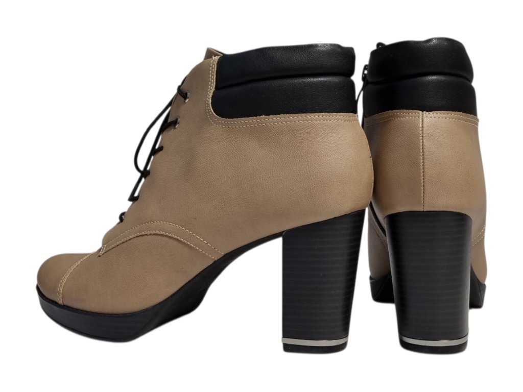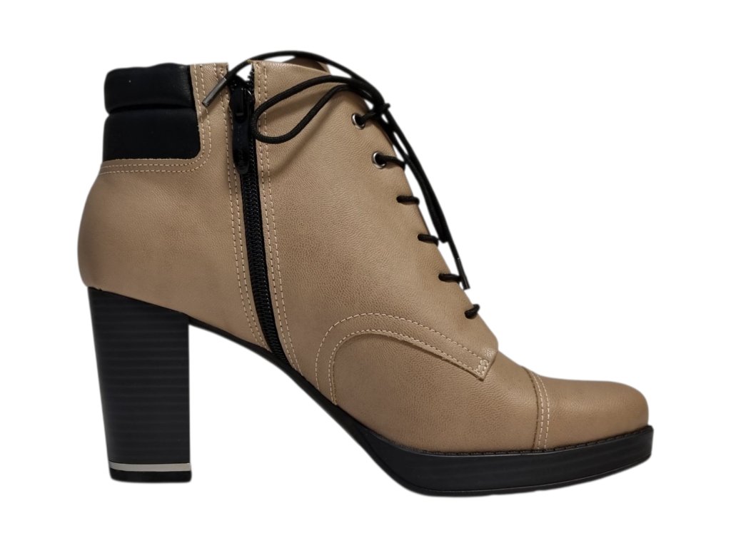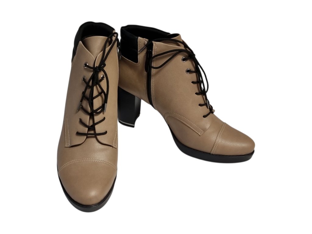 Svršek bot je vyroben ze syntetického materiálu vysoké kvality, který je měkký a přizpůsobivý, zároveň se snadno udržuje. Uvnitř najdete jemnou podšívku, jež zajišťuje příjemné teplo a pohodlí po celý den. Obuv se pohodlně nazouvá díky zipu na vnitřní straně, takže se nemusíte zdržovat šněrováním, které lze trvale uvázat. Podpatek i podešev jsou navrženy tak, aby poskytly stabilní krok a optimální oporu.