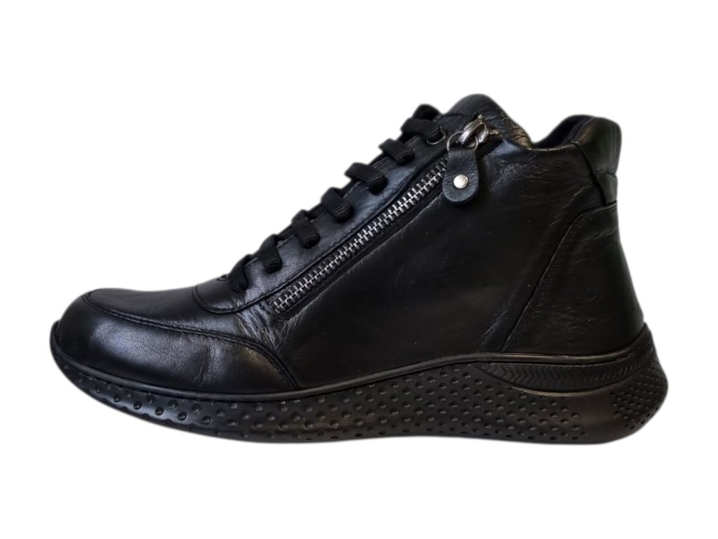 Dámské kotníkové boty Urban Ladies spojují moderní městský styl s praktickým pohodlím. Díky kombinaci šněrování a zipu na vnější straně, a také zipu na vnitřní straně se snadno nazouvají a zároveň pevně drží na noze. Hrubší podešev dodává botám módní vzhled i jistotu při chůzi. Svršek je vyroben ze koženého materiálu, který se snadno udržuje a odolává vlhkosti. Vnitřní zip usnadňuje obutí, zatímco pásek na suchý umožňuje přizpůsobit šířku podle potřeby.