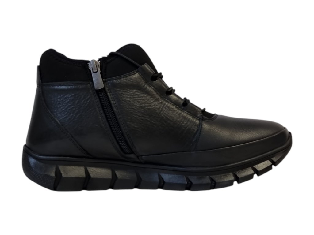 Vnitřní podšívka je z měkkého textilu, který zajišťuje příjemné klima pro nohu. Lehká, ale stabilní podešev tlumí nárazy a podporuje přirozený pohyb chodidla. Zipy na bocích usnadňují obouvání a vyzouvání, zatímco zajímavé detaily dodávají botám moderní vzhled.