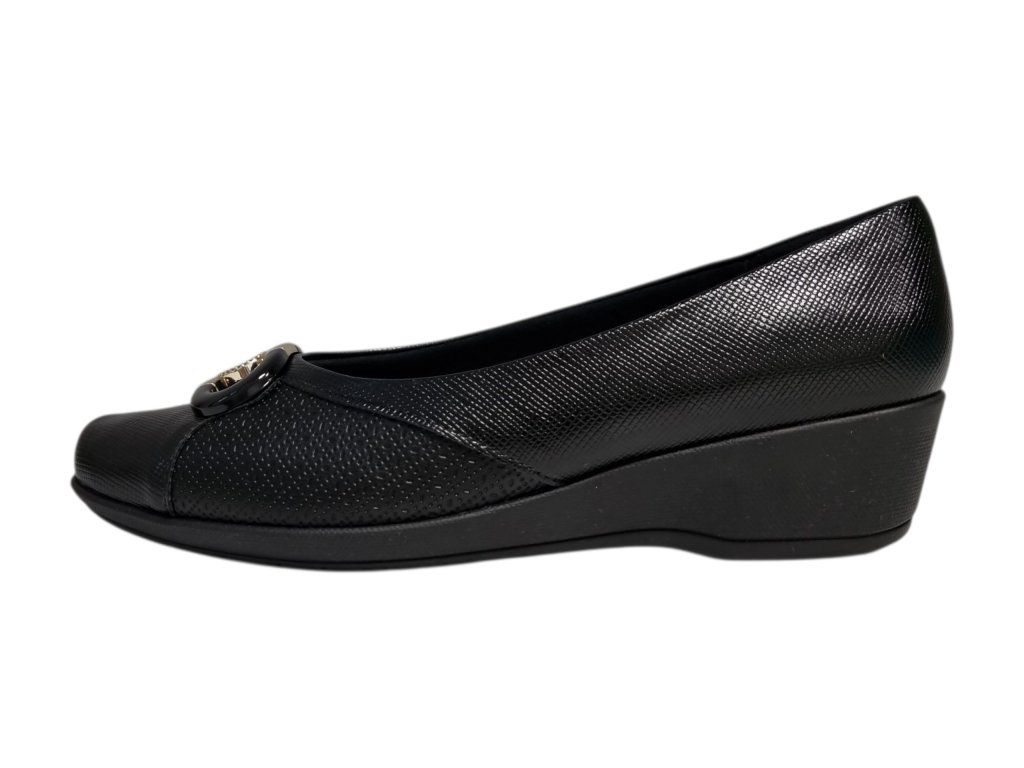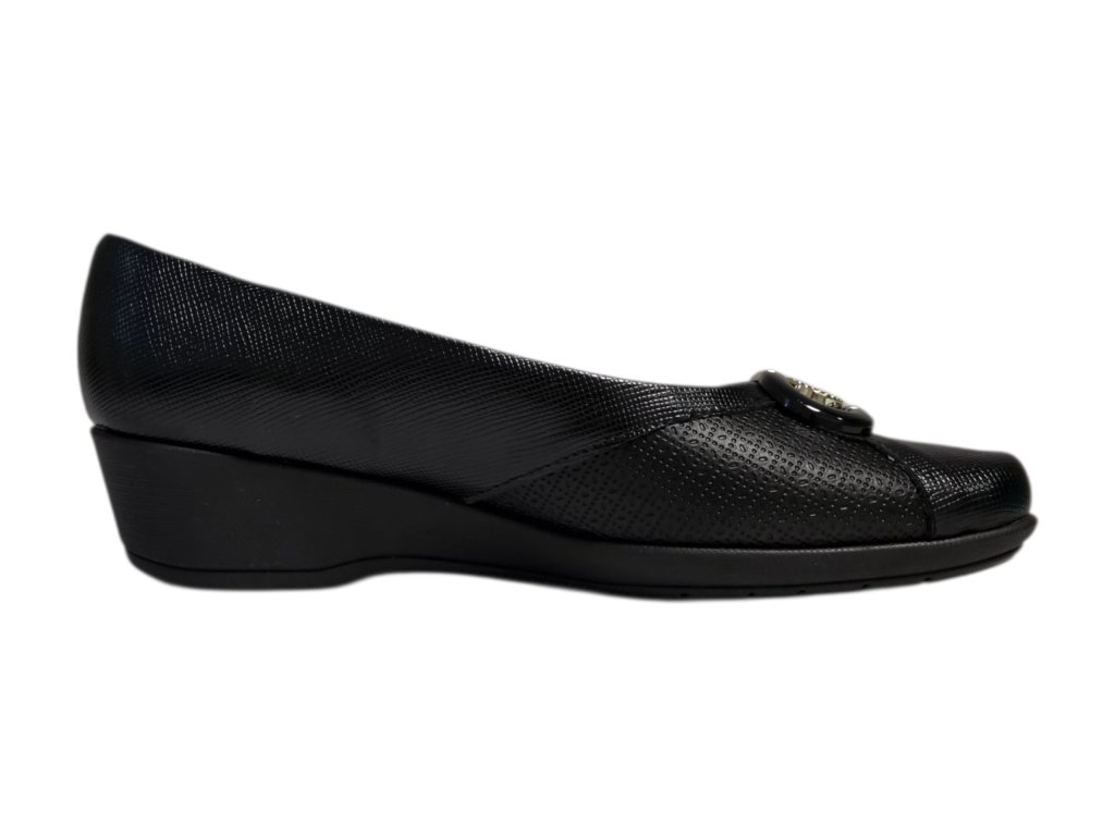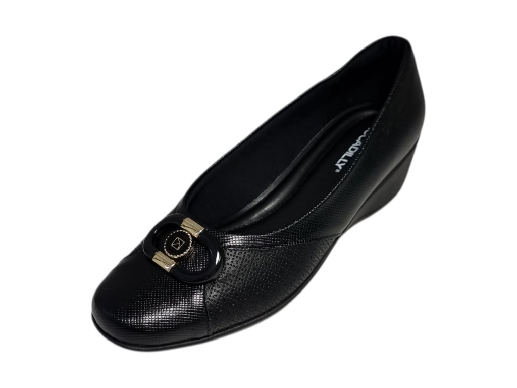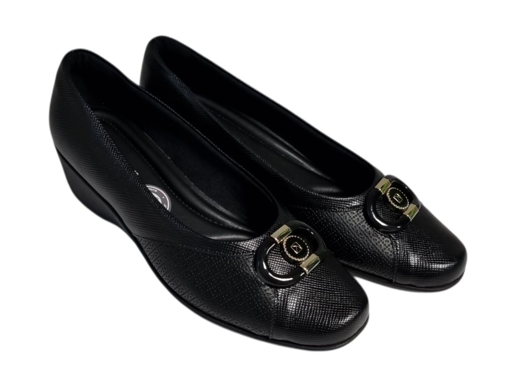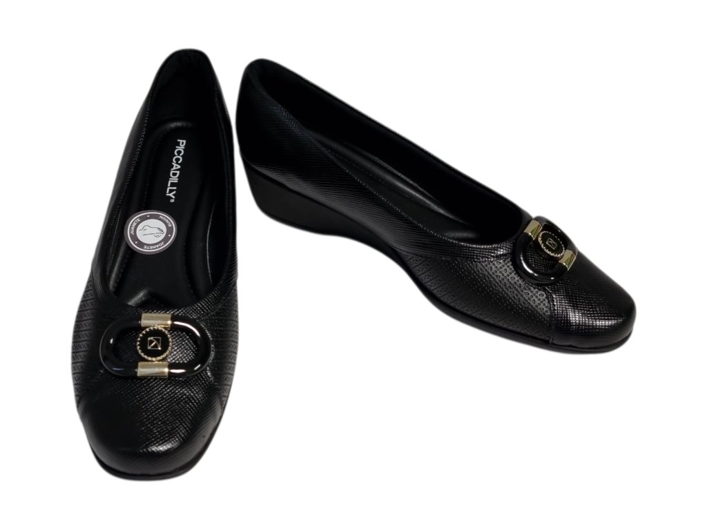 Dámské lodičky brazilské značky Piccadilly řady Joanete na podpatku, kombinují eleganci s maximálním pohodlím. Speciální konstrukce v oblasti nártu je rozšířená a flexibilní, díky čemuž se přizpůsobí chodidlu a poskytuje úlevu při hallux valgus (vbočeném palci) i dalších deformitách prstů.