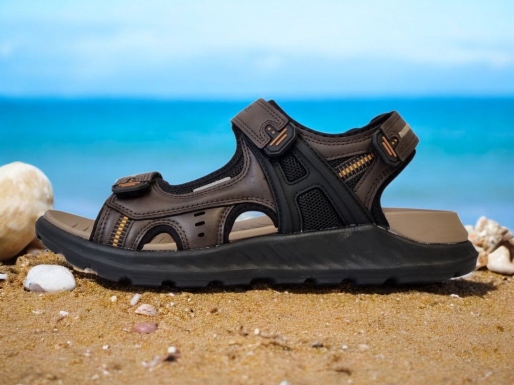 Praktické a pohodlné pánské sandály značky Lumberjack se 3 nastavitelnými pásky na suchý zip, zaručí perfektní přizpůsobení každé noze. Vyšší měkčená podešev poskytuje vynikající pohodlí při každém kroku. Lehký svršek ze syntetiky je odolný a snadno se udržuje. Ideální volba pro každodenní nošení v létě, na procházky i cestování.