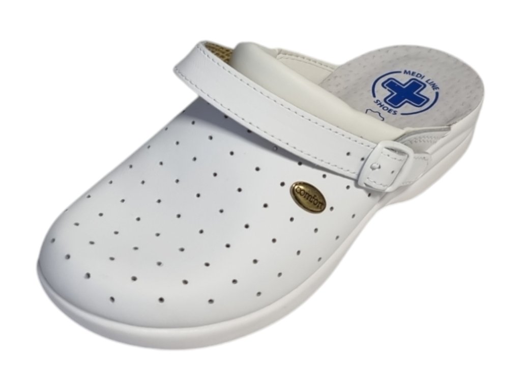 Boty MEDI LINE jsou vyráběny z pravé kůže, pružné lycry a moderních syntetických materiálů, které zajišťují optimální přizpůsobení noze, vysokou prodyšnost a snadnou údržbu. Díky měkké vnitřní stélce, dostatečnému prostoru v přední části obuvi a ergonomickému tvaru poskytují boty vysoký komfort při chůzi i při dlouhodobém stání. Díky pečlivé konstrukci a použití kvalitních materiálů poskytují tyto boty potřebnou oporu, prostor i měkkost.
