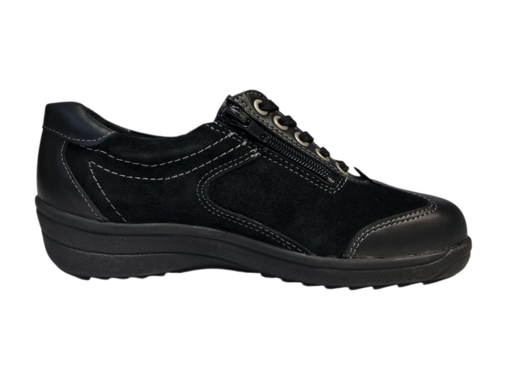 Polobotky značky MEDI LINE jsou vyráběny z pravé kůže což zajišťuje vysokou odolnost, přizpůsobivost tvaru nohy a celodenní komfort. Široká špička umožňuje volný pohyb prstů a zabraňuje tvorbě otlaků a tlakových bodů. Tento model má zavazování na ploché tkaničky, které usnadňují obouvání a zajišťují dobré držení boty na noze. Na vnitřní straně je funkční zip.