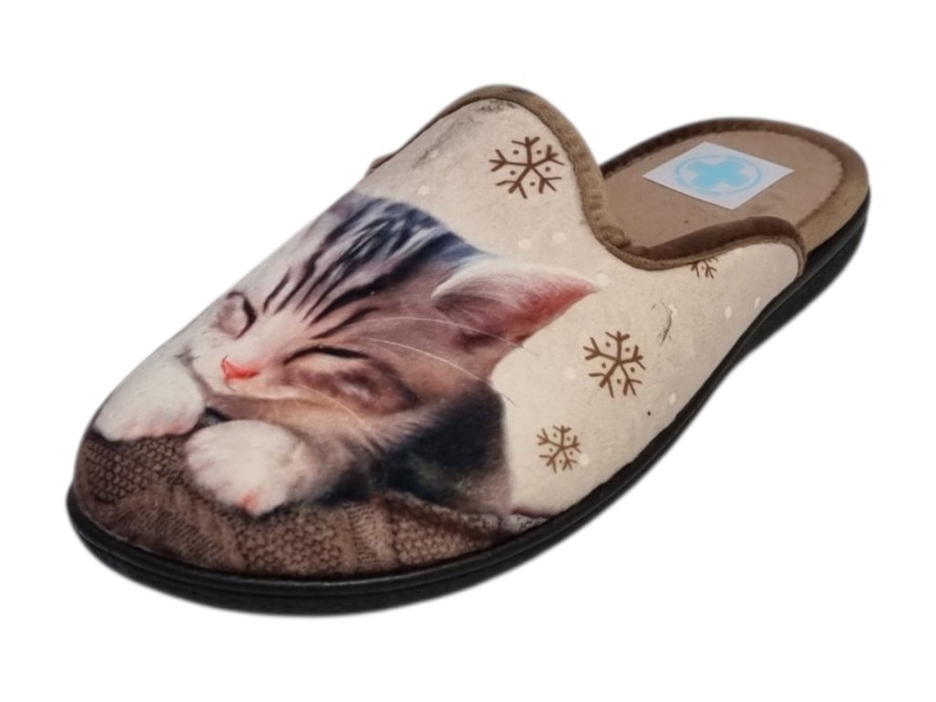🎨 Barva - béžová v kombinaci s hnědou a obrázkem spící kočičky