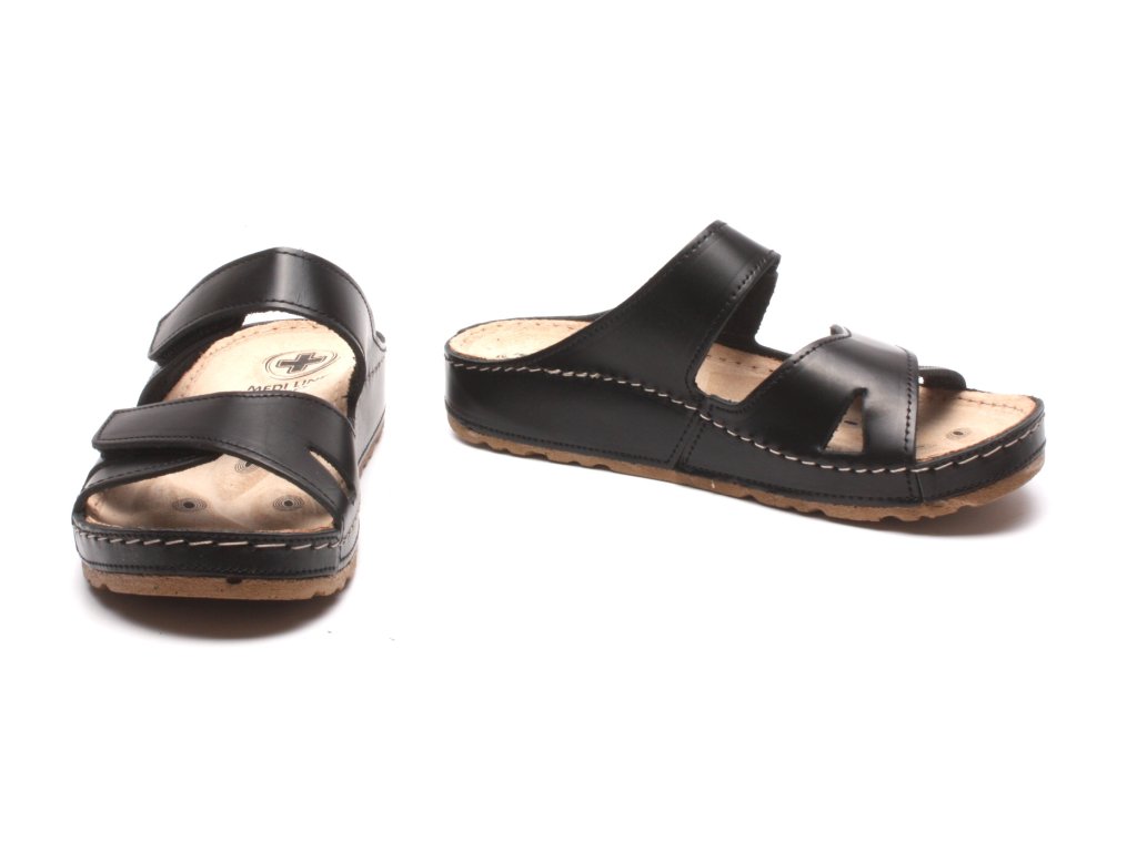 🟩 Svršky sandálů značky MEDI LINE jsou vyráběny z pravé kůže, lycry, stretche nebo kombinovaných syntetických materiálů, které se přizpůsobí tvaru nohy. Díky nastavitelným páskům se suchými zipy si uživatel snadno upraví obuv podle individuálních potřeb. Lycrové varianty jsou navíc vhodné i pro osoby s diabetem díky měkkému, poddajnému a bezešvému provedení, které minimalizuje riziko otlaků a poranění.