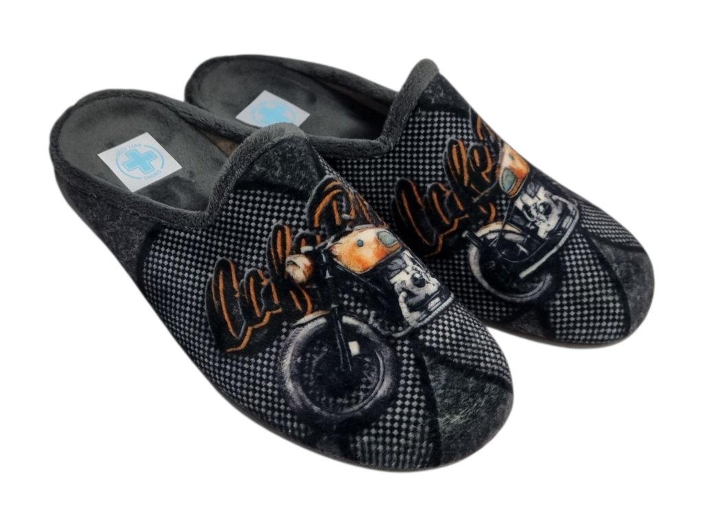 MEDI LINE pánské pantofle 7907-23 šedé s motorkou