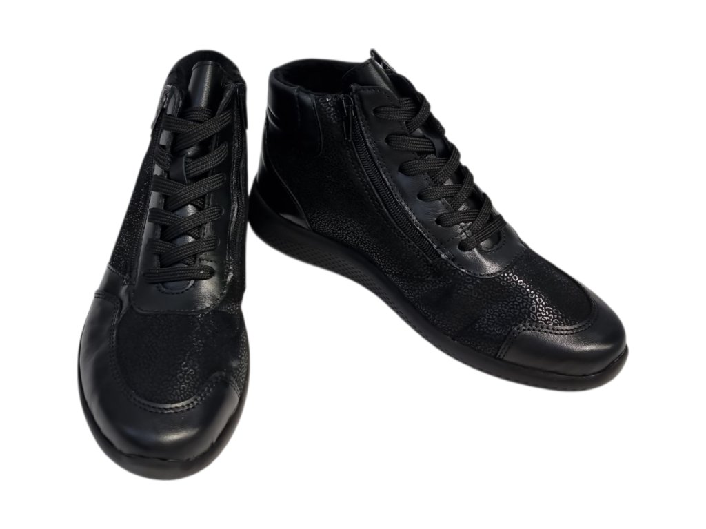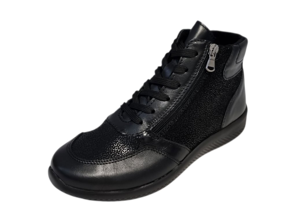 Polobotky značky MEDI LINE jsou vyráběny z pravé kůže, elastické lycry nebo prodyšné syntetiky, což zajišťuje vysokou odolnost, přizpůsobivost tvaru nohy a celodenní komfort. Široká špička umožňuje volný pohyb prstů a zabraňuje tvorbě otlaků a tlakových bodů. Tento model má zavazování na ploché tkaničky, které usnadňují obouvání a zajišťují dobré držení boty na noze. Na vnější straně je funkční zip.
